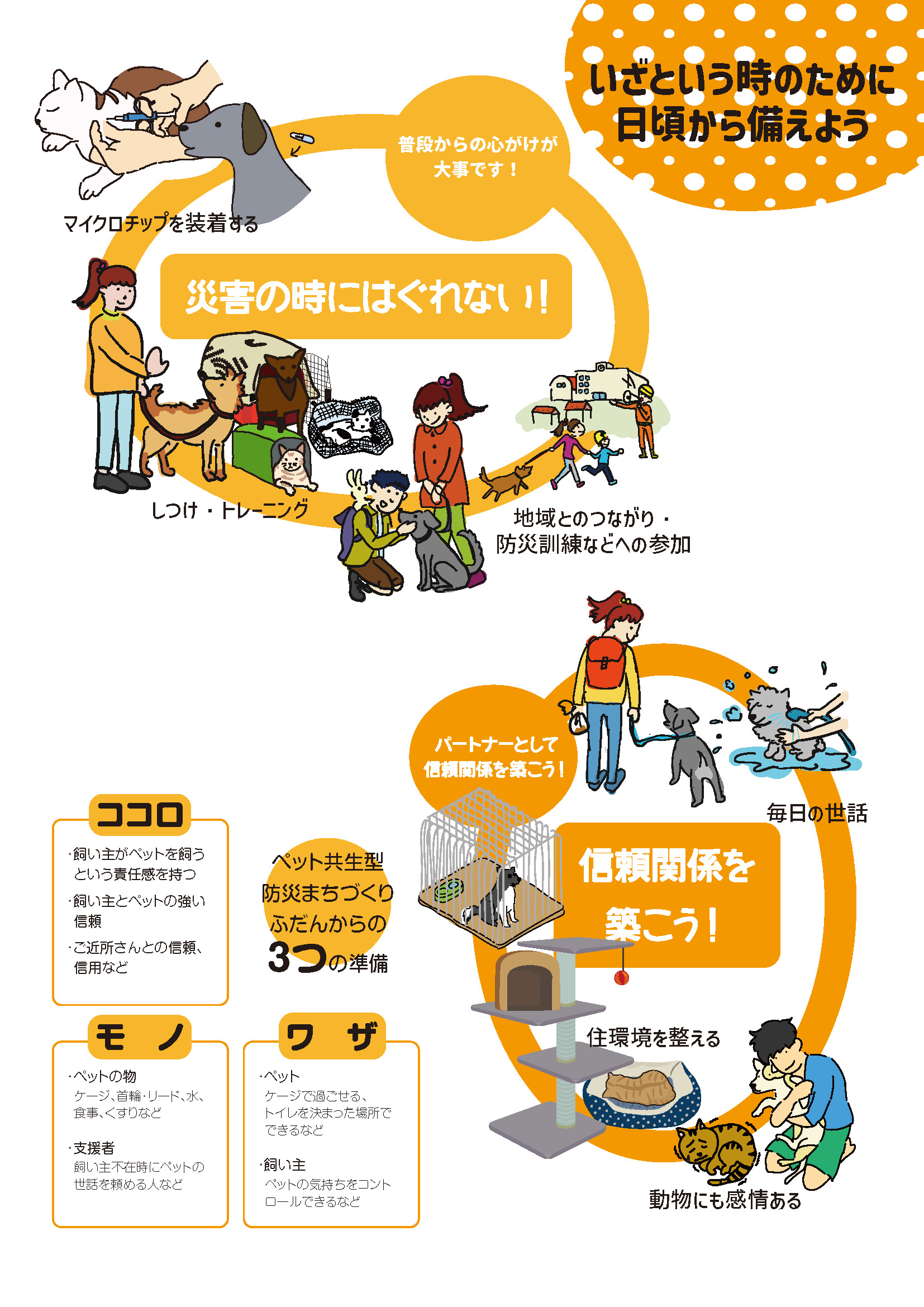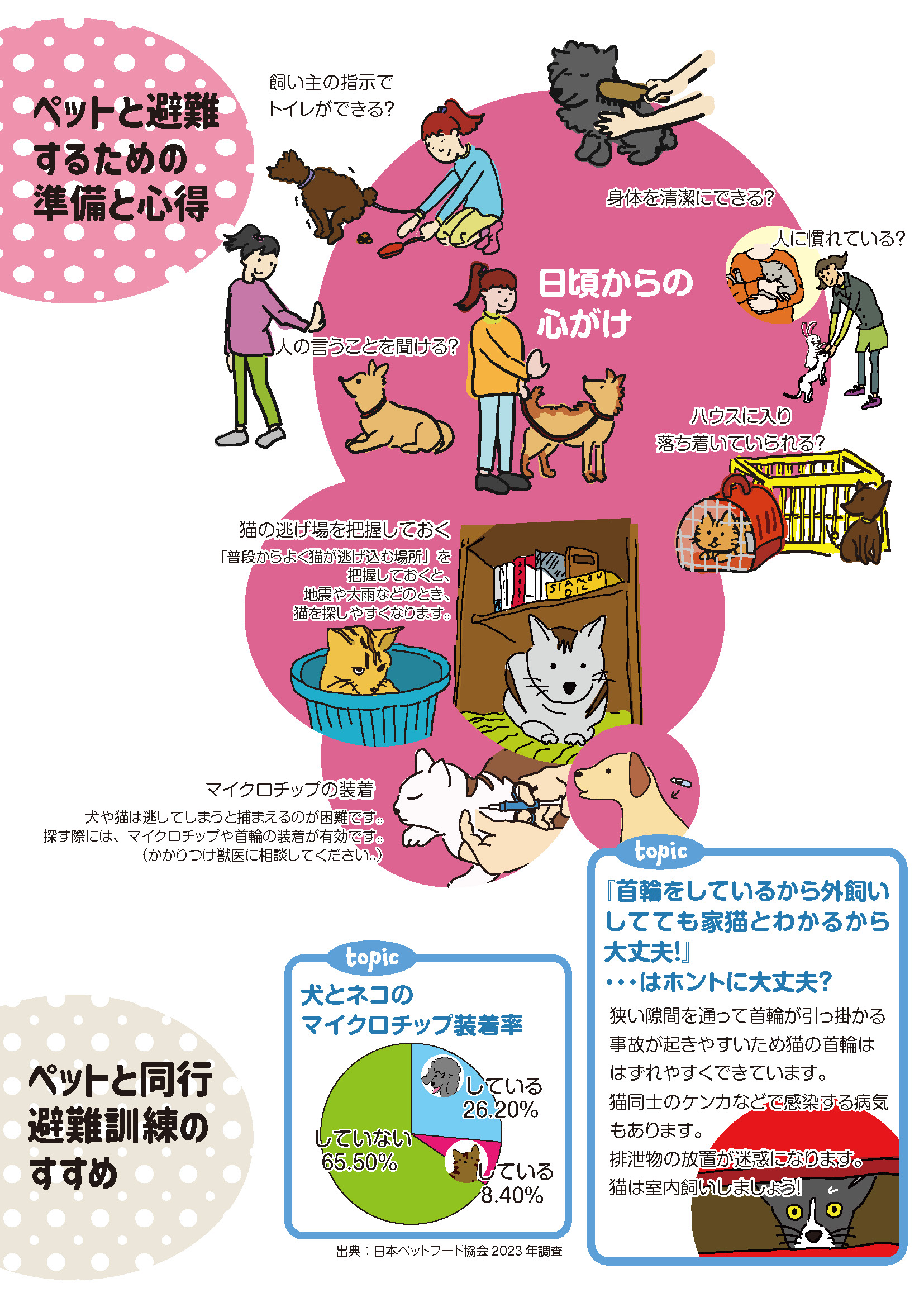 防犯のまちづくり。災害がおきたとき、 あなたはペットを守れますか? いっしょに避難できますか?